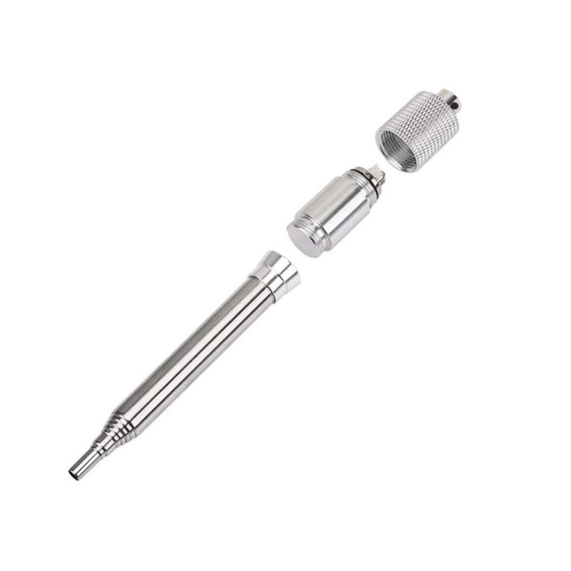 Gefertigt ist das Blasrohr aus hochwertigem Edelstahl (rostfrei). Das Feuerzeug ist an der Spitze verschraubt und ist somit auch bequem abnehmbar um das Blasrohr zu werden. Das Feuerzeug wird von Oben mit Feuerzeug Benzin gefüllt.