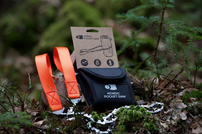 Die Nordic Pocket Saw ist der perfekte Begleiter für Campingausflüge und Wanderungen.