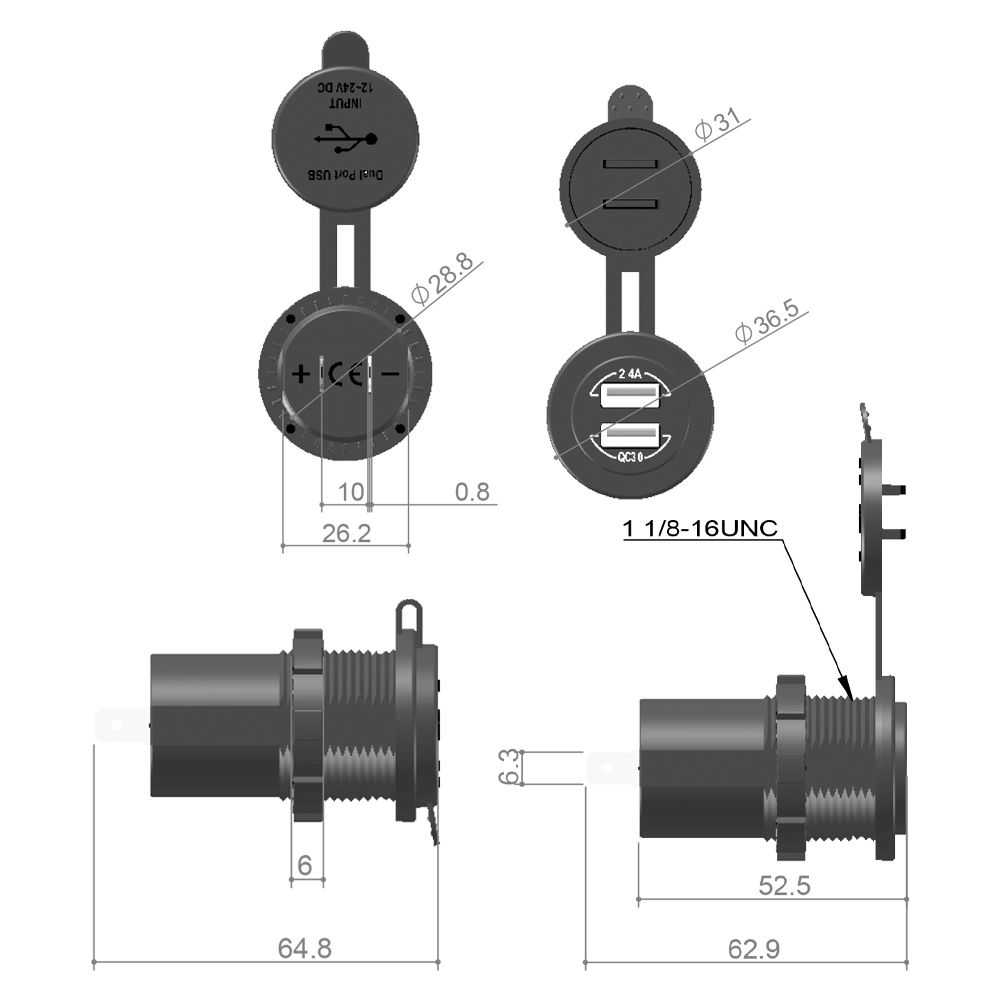 Produktinformationen "USB Doppelsteckdose 12V/24V 5V/4,8A - 3,6V/32W "