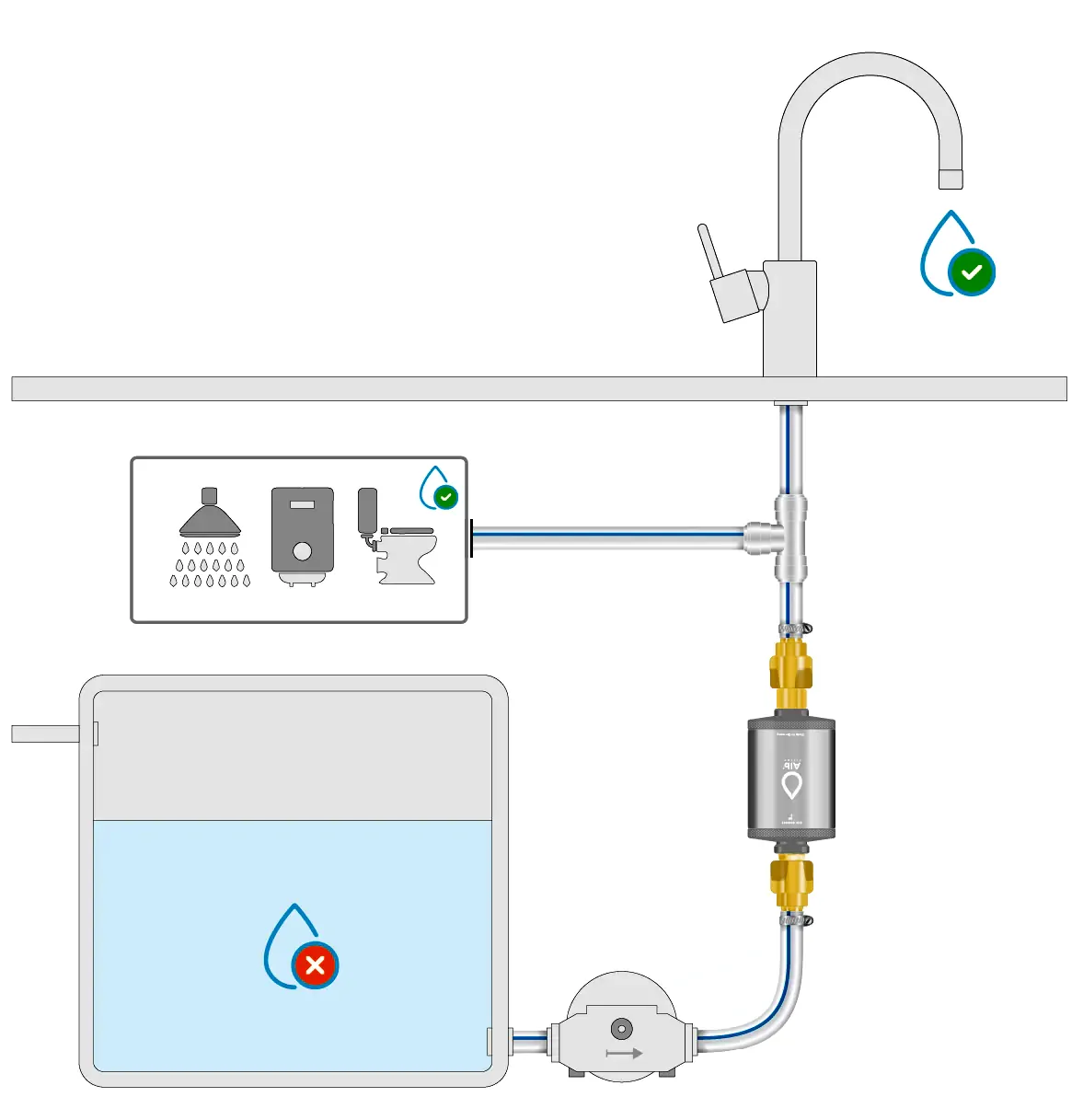 ... der Albfilter Travel Nano als Einbauvariente direkt nach dem Wassertank liefert ihnen bestes und sauberes Trinkwasser - die absolute Keimsperre!