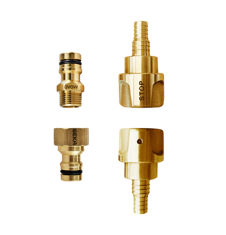 2x GEKA Schnellkupplung (Gardena® kompatibel). Stufentülle 10 - 13 mm (DVGW)