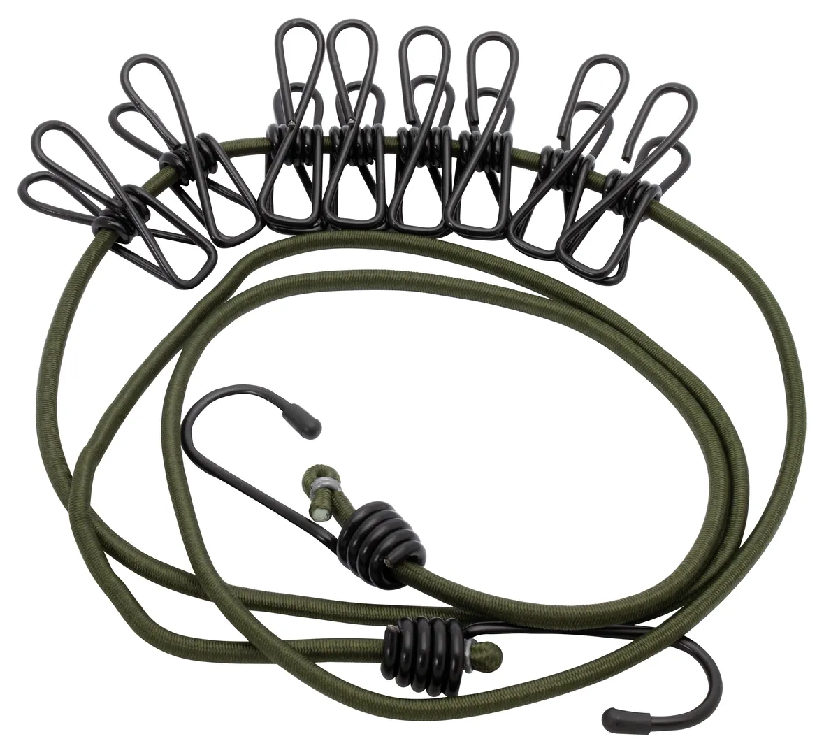 ... das besondere Camping Gadget was bei keinem längeren Ausflug fehlen darf, die elastische Expander Wäscheleine!