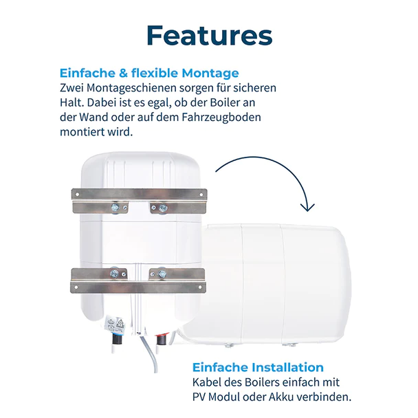 ... der Fothermo Caravan Warmwasser Boiler mit 10 Liter Fassungsvermögen wandelt Ihren Solarstrom in warmes Wasser um - perfekt für autarkes Camping!