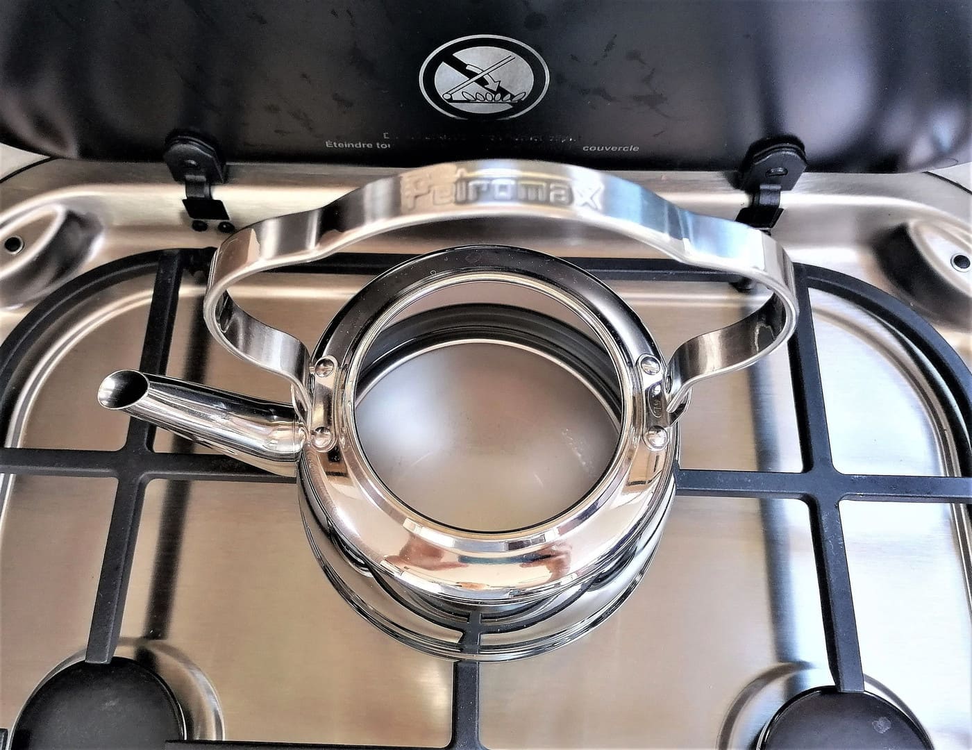 Mit dem Petromax Teekessel aus hochwertigem Edelstahl wird Wasser schnell und einfach erhitzt - auf dem offenen Feuer ebenso gut wie auf einem Elektro-, Gas- oder Induktionsherd. Der dreifach bogenförmige, bewegliche Henkel ermöglicht das Aufhängen über dem Feuer und gestattet eine angenehme Handhabung. Der mehrschichtige Boden gewährleistet eine perfekte Hitzeverteilung. Der Teekessel ist sowohl für Outdoor, Camping und Garten als auch für Zuhause ein schickes und nützliches Utensil.