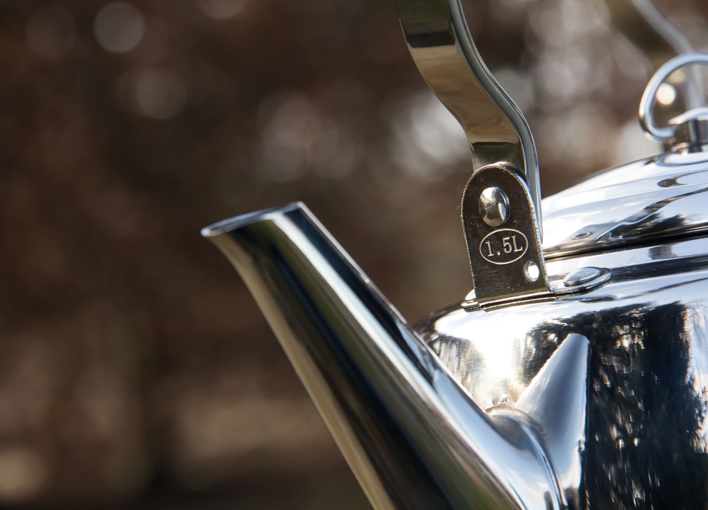 Der Teekessel von Petromax aus reinem Edelstahl kommt in einem klassischen und äußerst robusten Design daher.
