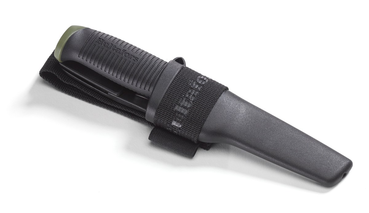 Die strapazierfähige Gürtelschlaufe erlaubt bis zu 80 mm breite Gürtel und ist mit einer Tasche für einen Feuerstarter ausgestattet (Feuerstahl nicht im Lieferumfang enthalten). Die Klinge hat einen Scandi-Schliff und besteht aus japanischem Messerstahl, 3,0 mm Kohlenstoffstahl, der auf 58-60 HRC gehärtet und mit einer elektrophoretischen Rostschutzbeschichtung versehen wurde, um das Messer bestens vor Korrision zu schützen. Durch den geschliffene Rücken der Klinge, kann dieser bestens zur Verwendung mit einem Feuerstarter verwendet werden. Details zum Hultafors OK4 Outdoormesser: