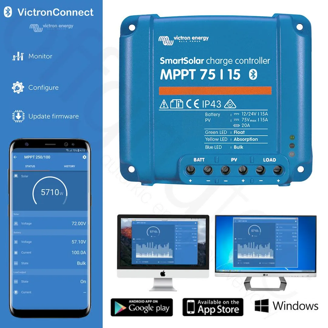 Das FSP-2 135W Ultra arbeitet mit rückseitenkontaktierten Solarzellen wie sie auch in unseren SP-Hochleistungsserien zum Einsatz kommen. Diese Zellen generieren Wirkungsgrade von über 22% und sind die besten derzeit am Markt verfügbaren. Zusätzlich ist die komplette FSP-2 Serie mit einer ETFE-Beschichtung versehen, die für einen besseren Schutz sorgt und zugleich eine sehr hohe Lichtdurchlässigkeit gewährleistet. Außerdem produzieren wir unsere Solarmodule gemäß aktueller Normen und Standards was unsere Module zusammen mit den hochwertigen Materialien zu High-End-Produkten macht, die auch unter widrigsten Bedingungen technische Höchstleistung bringen. Der Victron SmartSolar MPPT 75/15 Laderegler:
